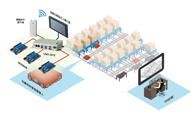 工業(yè)自動化以小尺寸、高穩(wěn)定的UNO-2372G確保冷凍庫專用四向穿梭機(jī)器人之可靠運行項目簡介:而在偌大倉庫內(nèi)的眾多機(jī)器人要能有條不紊地在貨架間來回穿梭運送貨物,或者在零下的極低溫環(huán)境下正常運行,其所采用的嵌入式計算機(jī)扮演著關(guān)鍵角色。以近幾年來備受關(guān)注的四向穿梭機(jī)器人來說,由于可以橫向和縱向軌道任意行駛,使其路徑規(guī)劃與調(diào)度系統(tǒng)之設(shè)計本就相當(dāng)復(fù)雜,若采用了穩(wěn)定性不佳的計算機(jī),不僅會影響穿梭機(jī)器人運行的順暢度,一旦計算機(jī)發(fā)生當(dāng)機(jī)問題則會讓穿梭機(jī)器人卡在軌道上動彈不得,而產(chǎn)品頻頻故障更會增加售后服務(wù)的維修成本,亦會損及機(jī)器人制造商的公司商譽(yù)。 研華的UNO-2372G是一款尺寸緊湊且穩(wěn)定可靠的嵌入式計算機(jī)。精巧機(jī)身設(shè)計讓這款工業(yè)級箱型計算機(jī)非常適合安裝在空間有限的搬運機(jī)器人內(nèi);而強(qiáng)固特性與寬溫特色則使其擁有絕佳的可靠度與耐用度。因此,不論是在嚴(yán)苛環(huán)境或低溫狀態(tài)下,UNO-2372G都能穩(wěn)妥地執(zhí)行系統(tǒng)程序,從而為四向穿梭機(jī)器人之可靠運行提供了最有力的保障。 系統(tǒng)需求:該公司的第三代穿梭機(jī)器人是為低溫物流中心所設(shè)計的產(chǎn)品。由于這款穿梭車的外型扁平猶如托盤,使其內(nèi)部空間相當(dāng)局促,但它仍需配置多種硬件裝置(包括計算機(jī)、電池、微控制器、無線客戶端等等)才能按上位系統(tǒng)下達(dá)的命令運送貨物。因此,該公司對新的嵌入式計算機(jī)提出了以下需求: